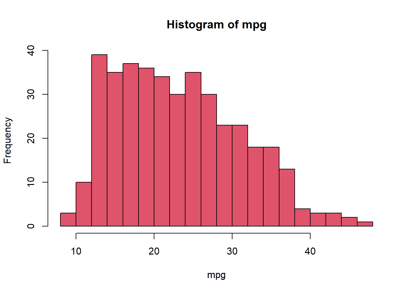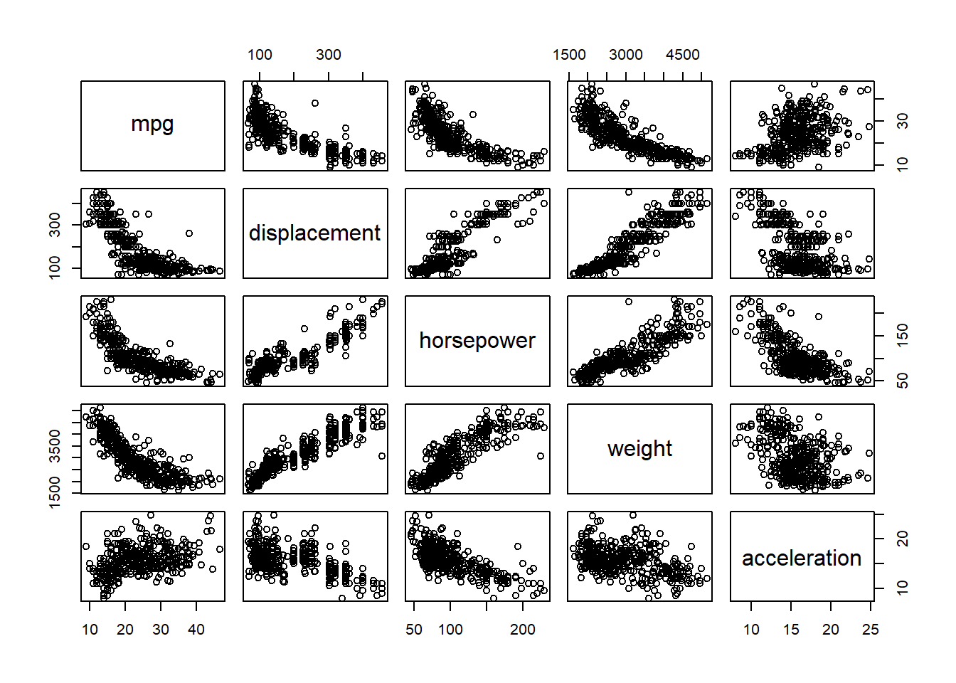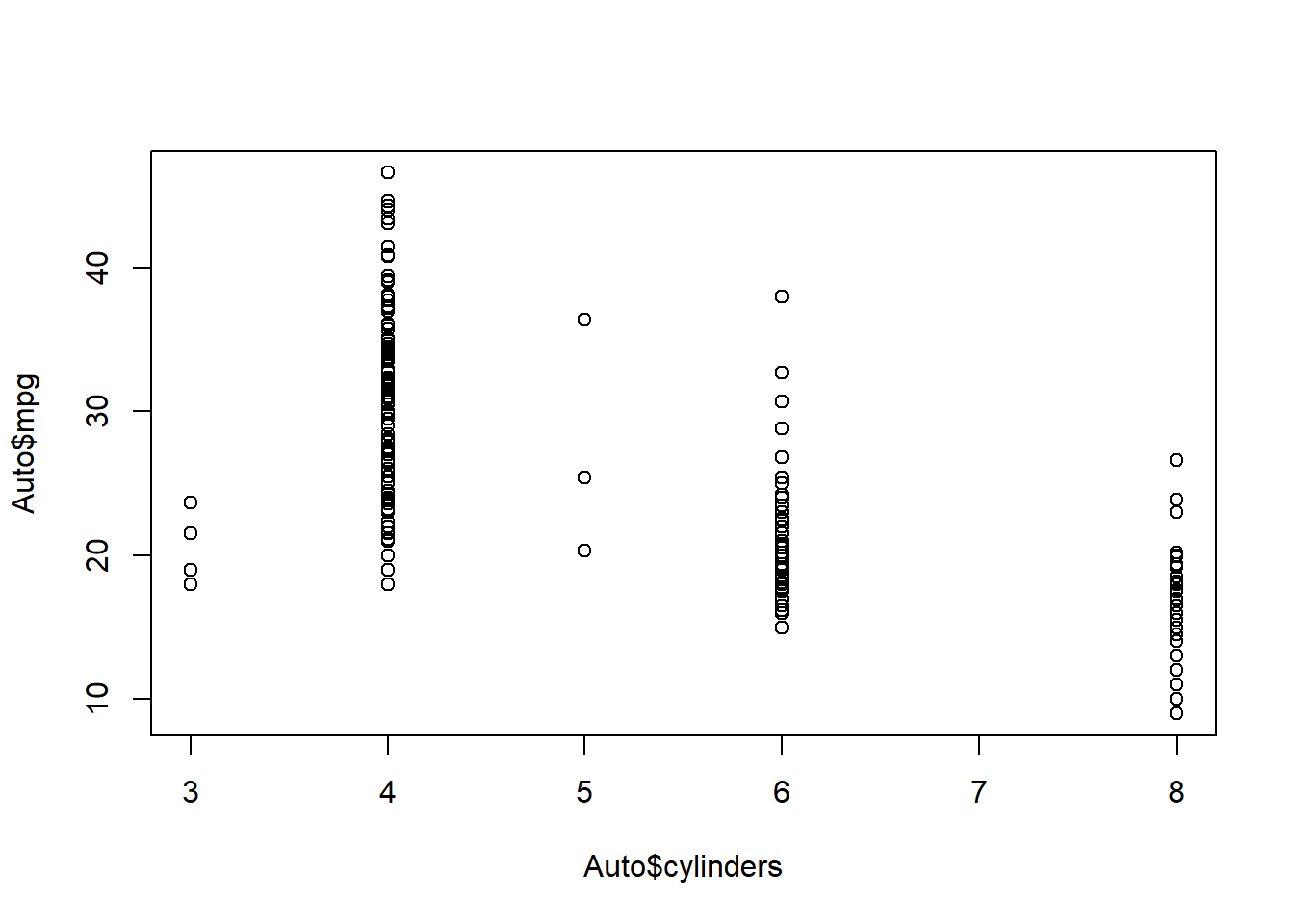 Auto=read.table("https://raw.githubusercontent.com/datageneration/knowledgemining/master/data/Auto.data")Auto=read.table("https://raw.githubusercontent.com/datageneration/knowledgemining/master/data/Auto.data",header=T,na.strings="?") Auto=read.csv("https://raw.githubusercontent.com/datageneration/knowledgemining/master/data/Auto.csv") # read csv file# Which function reads data faster?# Try using this simple method# time1 = proc.time()# Auto=read.csv("https://raw.githubusercontent.com/datageneration/knowledgemining/master/data/Auto.csv",header=T,na.strings="?")# proc.time()-time1# Check on datadim(Auto)