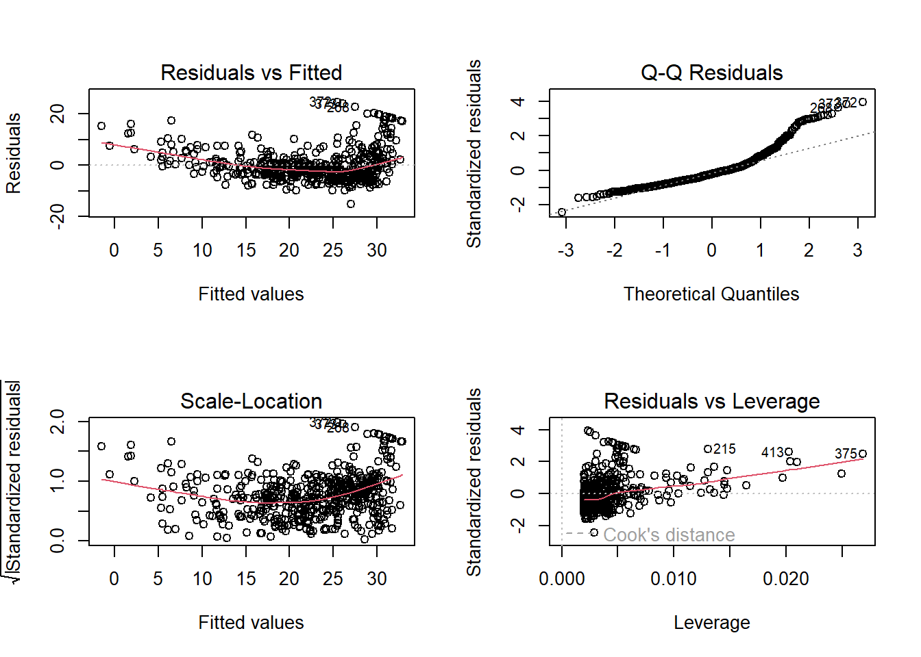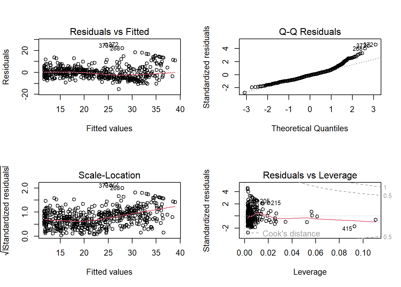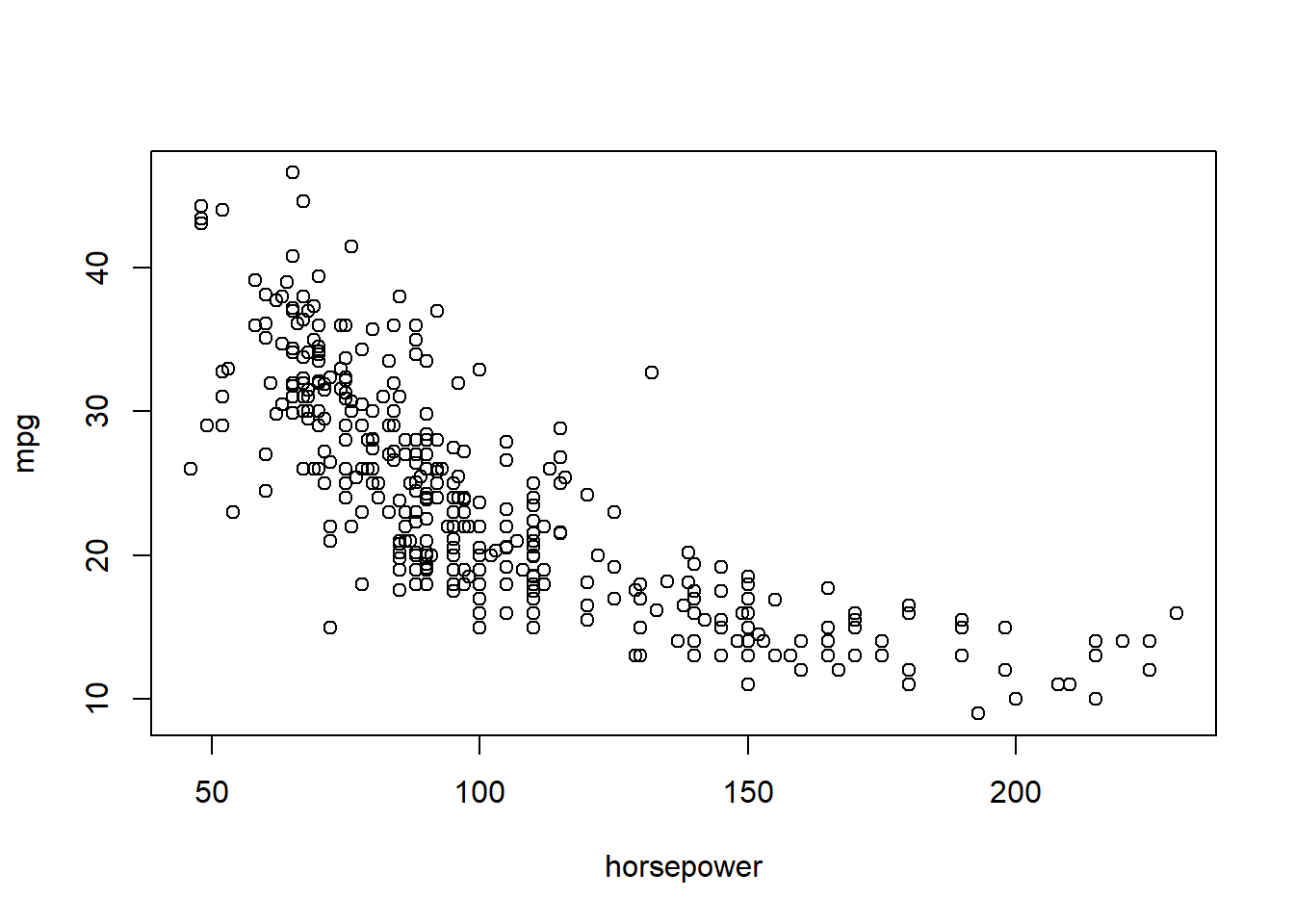 # identify(horsepower,mpg,name) # Interactive: point and click the dot to identify casessummary(Auto)